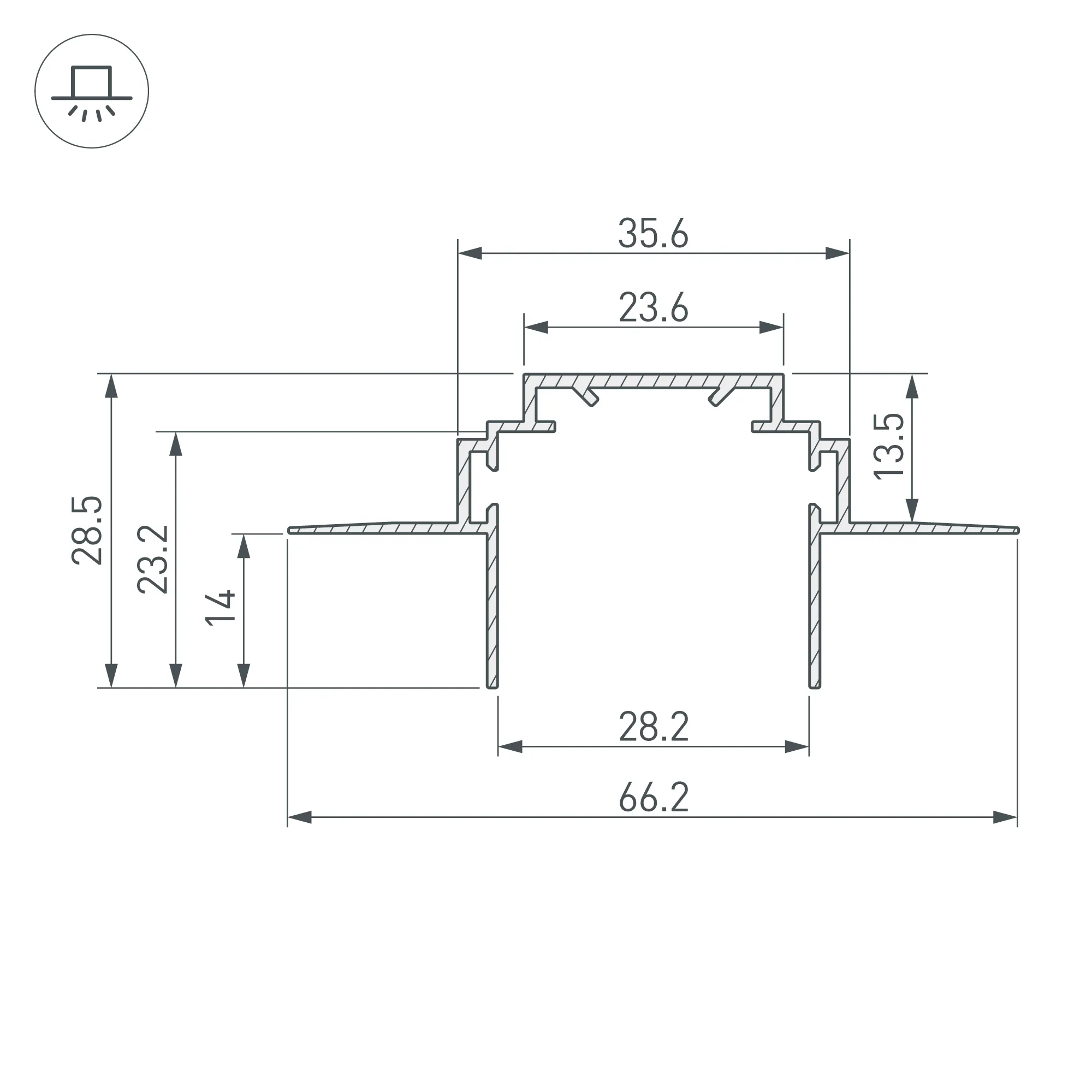 Алюминиевый профиль-держатель для встраивания в гипсокартон толщиной 12.5 мм. В TEK-PLS-ZM можно установить любой профиль PLS-LOCK при помощи клипс TEK-PLS-CLIP. Рекомендуется профиль PLS-LOCK-H25-FS (016446) для создания полосы света в один уровень с потолком. Габаритные размеры (L×W×H): 2000x66,2x28,5 мм. Заглушки и другие аксессуары приобретаются отдельно. Цена за 1 метр.