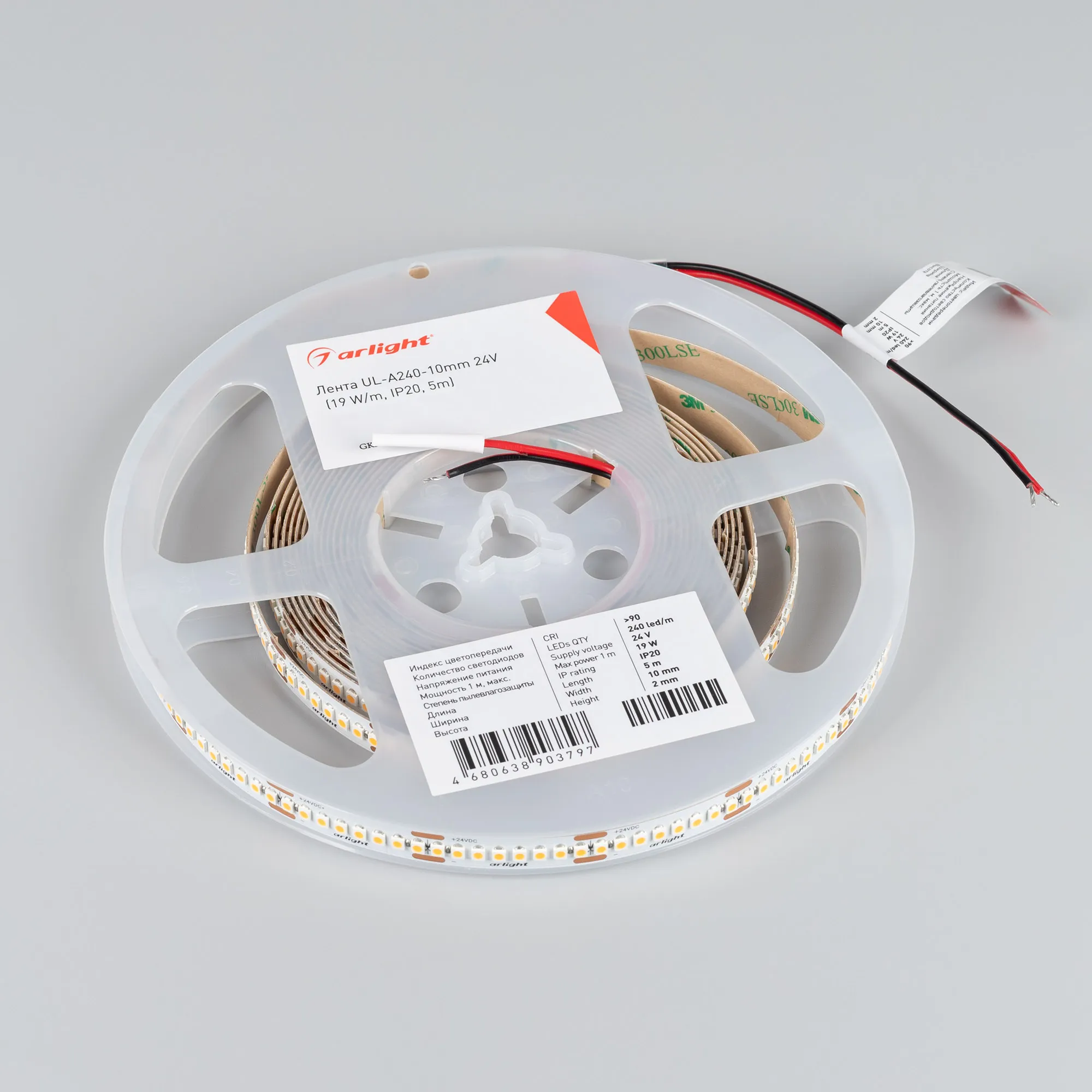 В магазине Arled Market Вы можете купить "Лента UL-A240-10mm 24V Day4000 (19 W/m, IP20, 5m) (Arlight, 7 лет)"