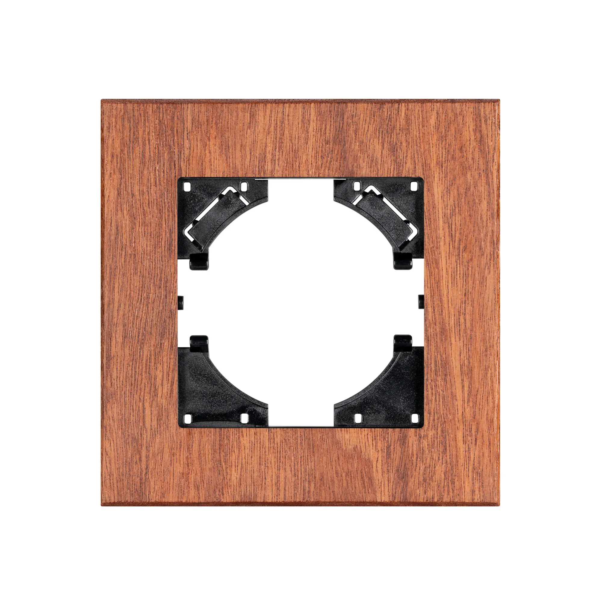 Рамка пластиковая на 1 пост с накладкой из натурального дерева, под встраиваемый механизм. Цвет - натуральное дерево*. Уровень герметичности IP20. Ориентация монтажа - горизонтальная (основным ориентиром служат посадочные выступы для накладки механизма).