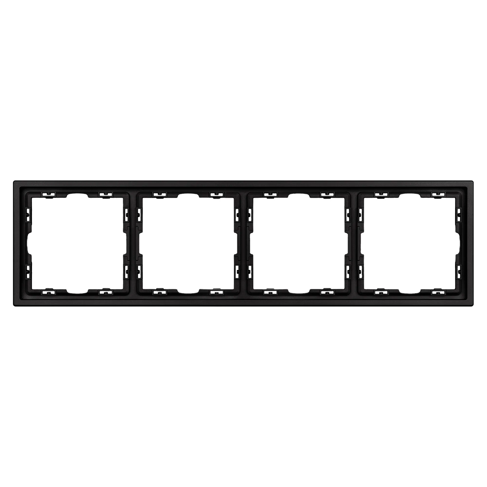 Рамка пластиковая на 4 поста, под встраиваемый механизм. Цвет - черный оникс, с Soft-Touch покрытием. Среднего уровня герметичности IP20. Ориентация монтажа горизонтальная.
