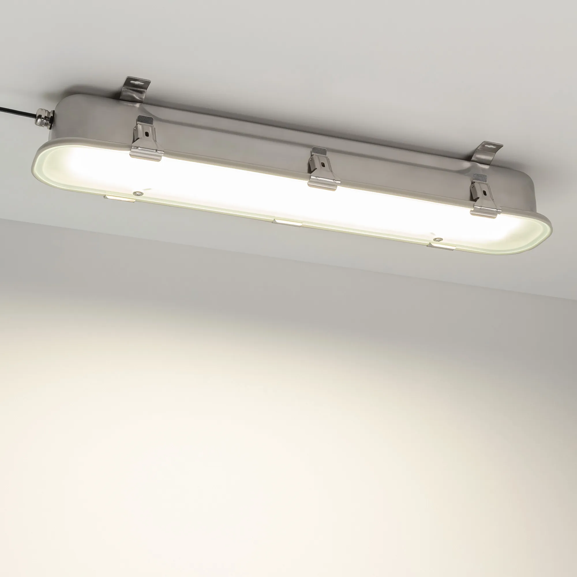 Влагозащищенный линейный светильник для использования в технических помещениях и в пожароопасных помещениях. Мощность светильника 20 Вт. Цвет свечения ДНЕВНОЙ 4000К, св.поток 2100 лм, CRI(Ra)>80, угол свечения 100°. Корпус прямоугольный, нержавеющая сталь, влагозащищенный IP65. Размер LxWxH 708x138x104мм. Питание AC 220-240В, 20 Вт, драйвер встроенный. Материал рассеивателя - темпорированное стекло. Материал корпуса - нержавеющая сталь AISI 304. С резиновым кабелем питания 3х1 мм длиной 35 см. Рабочая температура -30...+50°С. Может применяться в категориях помещений B1-B4 и Г. Классы пожароопасных зон П-I,П-II,П-IIа,П-III.